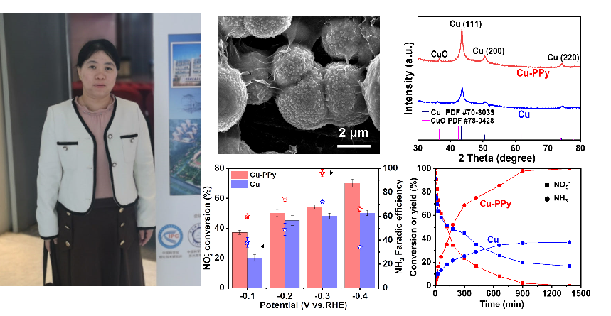 材料工程系栗麗副教授利用導電聚合物保護策略,通過在銅納米顆粒上修飾聚吡咯,用于強酸條件下高效電催化硝酸鹽還原制氨。在0.5 M硫酸電解液中,所制得催化劑的氨產率為0.55 mmol h-1 cm-2,硝酸鹽轉化率高達99.8%,氨選擇性和法拉第效率分別達到99.99%和96.0%。而且在較寬的硝酸鹽濃度范圍內,該催化劑也表現出優異的產氨法拉第效率和選擇性。相關研究成果撰寫的學術論文《Conductive polymer protection strategy to promote electrochemical nitrate reduction to ammonia in highly acidic condition over Cu-based catalyst》,發表在國際知名期刊Chemical Engineering Journal,2024,481, 148596.(1區TOP期刊,影響因子15.1)。北京石油化工學院為論文第一完成單位,我校碩士生陳浩彤為第一作者,栗麗副教授為通訊作者。
