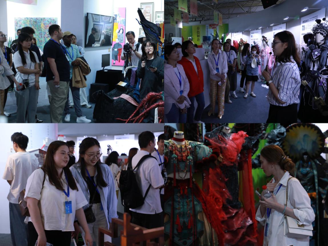 下午,大家乘車前往繁星戲劇村,參觀中國戲曲學院舞臺美術系畢業展,涵蓋繪畫、服裝設計、舞臺設計、動畫等9大專業百余件作品。在專業教師和創作者講解下,深入了解現代劇裝的設計理念與工藝創新。通過互動研習,同學們既感受到傳統戲曲的當代演繹,也領略到舞臺藝術的多元創意。