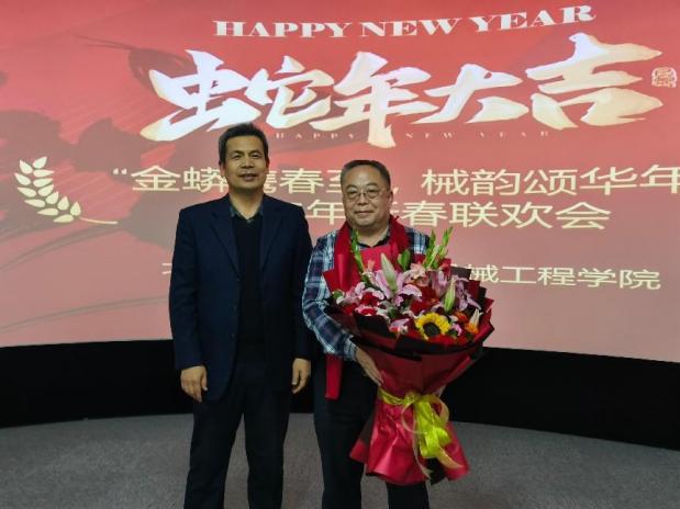 聯(lián)歡會(huì)恰逢原副校長焦向東教授榮退,張超書記、朱加雷院長代表學(xué)院獻(xiàn)花。焦老師三十年如一日,在焊接科研領(lǐng)域默默耕耘,多項(xiàng)創(chuàng)新成果打破了國外壟斷,填補(bǔ)了國內(nèi)空白。正是焦老師這樣心有大我,堅(jiān)守初心的精神,引領(lǐng)了一批又一批機(jī)械人在傳承和創(chuàng)新中書寫新篇章。