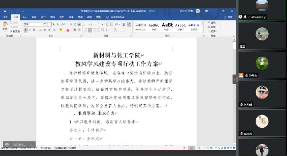 接著,王騰書記圍繞《新材料與化工學院教風學風建設專項行動工作方案》進行了部署。他強調,教師要加強課堂管理,以優良教風帶學風,加強教學督導,落實質量保障。輔導員、班主任要深入宿舍、深入課堂、深入輔導,也要發揮黨員先鋒作用,強化朋輩引領作用等,線上線下齊動員,共同助力學風建設。