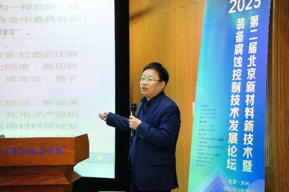 2023年11月29日,由北京市科學技術協會、大興區科學技術協會、北京市腐蝕與防護學會主辦、北京石油化工學院新材料與化工學院承辦的“2023第二屆北京新材料新技術暨裝備腐蝕控制技術發展論壇”在清源校區圖書館報告廳順利舉辦。論壇以“碳達峰和碳中和背景下的腐蝕控制技術創新與發展”為主題,為京津冀地區裝備材料腐蝕控制技術創新與高質量發展搭建學術交流平臺。北京腐蝕與防護學會理事長顧寶珊教授、副理事長劉建華教授,北京石油化工學院副校長靳海波教授,研究生處處長陳飛教授,新材料與化工學院黨委書記史開武、院長伍一波教授、副院長何廣湘教授,大興區科協阮達偉等領導出席會議。