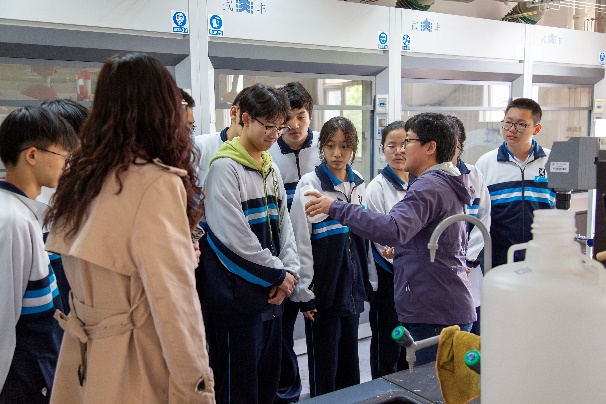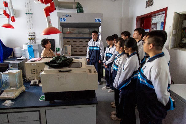 新材料與化工學院教學副院長劉姍姍,以及劉清龍、王新承、楊索和、于建香、邢光建、高大海、商育偉、趙明、彭效明、居瑞軍等教師及部分研究生志愿者參加了接待。興華中學師生一行分組參觀了新材料與化工學院化工、制藥和高分子三個專業(yè)的實驗室。通過實地參觀和互動交流,學生們深入了解了化工過程的原理和應用、制藥的全生命周期過程以及高分子科學的基本概念和應用,激發(fā)了學生對相關專業(yè)的興趣和熱情。