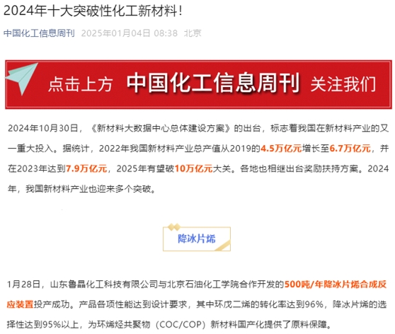 我校科研成果降冰片烯入選2024年十大突破性化工新材料