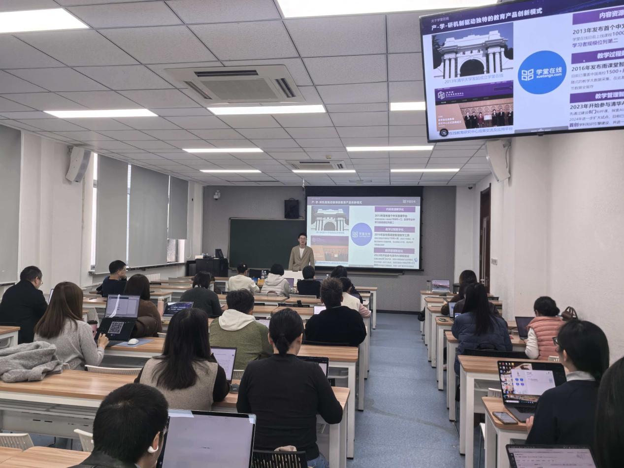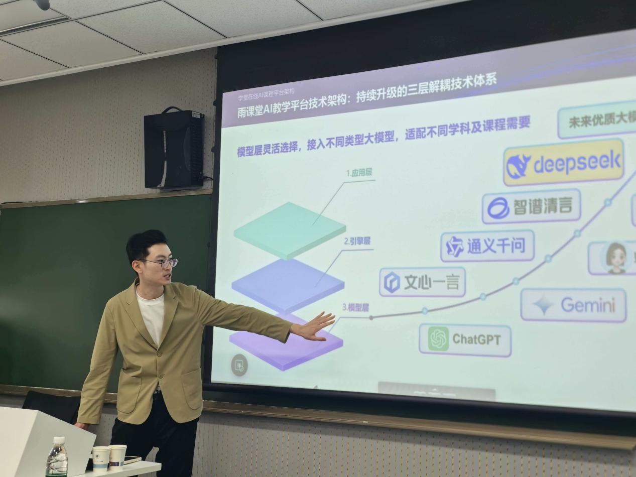 培訓中,吳文匯結合真實教學場景,演示了 AI 技術在教學全流程的創新應用:課前通過 AI 工作臺快速建課、智能備課,提升備課效率與質量;課中運用智能學伴、AI 講伴、搶答統計等功能,增強課堂互動與反饋精準度;課后依托自動生成教學報告、持續答疑等機制,實現教學數據沉淀、個性化輔導與長效跟蹤。